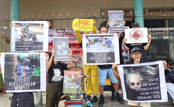 Peringati Hari Monyet Sedunia, Aksi Peduli Monyet dan AFJ Gelar Aksi, Desak Pemerintah DIY Segera Terbitkan Larangan Perdagangan Monyet